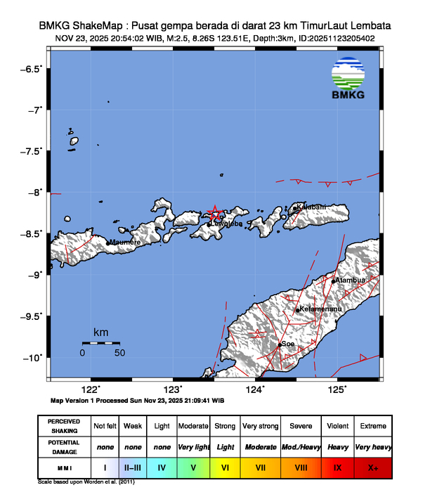 Gempa Berkekuatan 2,5 SR, pusat gempa berada di darat 23 km TimurLaut Lembata