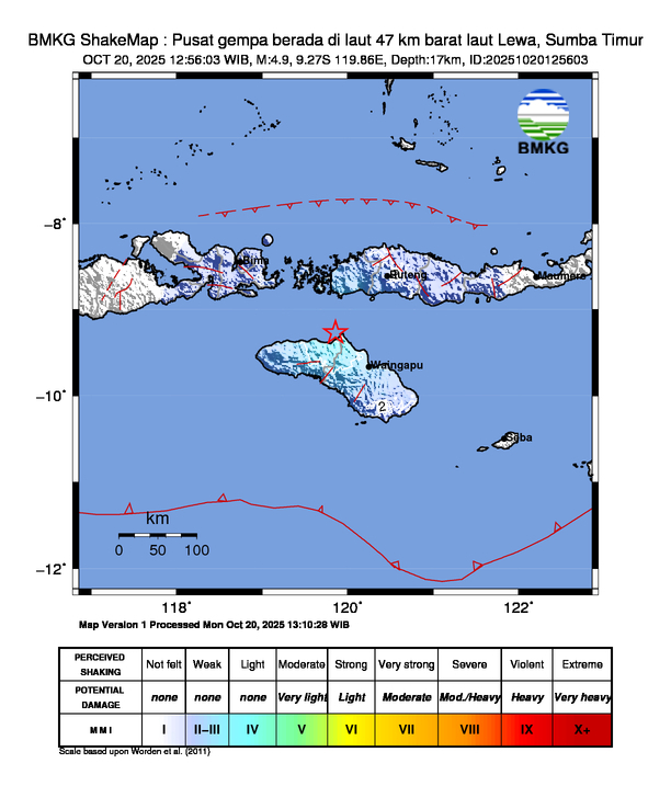 Gempa Berkekuatan 4,9 SR, pusat gempa berada di laut 47 km barat laut Lewa, Sumba Timur