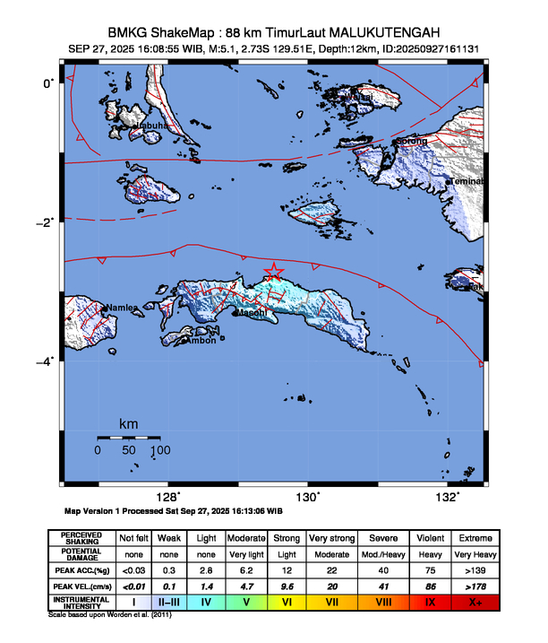 Gempa Berkekuatan 5,1 SR di 88 km TimurLaut MALUKUTENGAH Tidak Berpotensi Tsunami