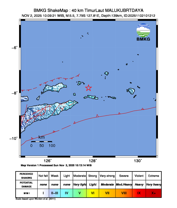 Gempa Berkekuatan 5,5 SR di 40 km TimurLaut MALUKUBRTDAYA Tidak Berpotensi Tsunami